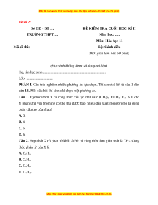 ĐỀ KIỂM TRA CUỐI HỌC KÌ II TRƯỜNG THPT … Năm học: …. Môn: Hóa học 11 Mã đề thi: Bộ: Cánh diều