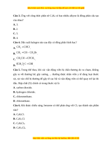 Câu 4. Dẫn xuất halogen nào sau đây có đồng phân hình học? A. . B. . C. . D. .