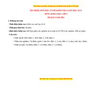 MA TRẬN, BẢN ĐẶC TẢ ĐỀ KIỂM TRA CUỐI HỌC KÌ II