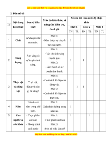 năng cần kiểm tra, kiến thức thức Mức 1 Mức 2 Mức 3 đánh giá TN TL TN TL TN TL Mức 1: Sự chuyển thể 1 Chất