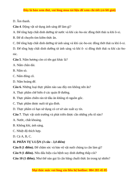 Câu 7. Thực vật sinh trưởng và phát triển được cần những yếu tố nào? A. Nước, chất khoáng. B. Không khí, ánh sáng.