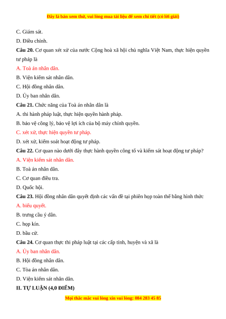 Câu 17. Thực hiện quyền giám sát tối cao là chức năng của A. Quốc hội. B. Chủ tịch Quốc hội.