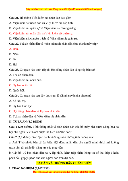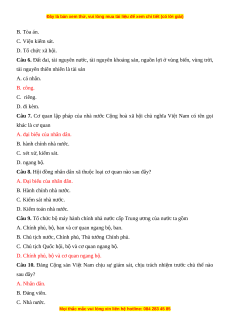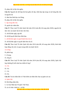 Câu 20. Toà án nhân dân và Viện kiểm sát nhân dân chịu sự giám sát của A. Quốc hội. B. Hội đồng nhân dân.