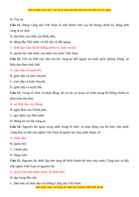 Câu 11. Đảng Cộng sản Việt Nam là một thành viên của hệ thống chính trị, đồng thời cũng là tổ chức