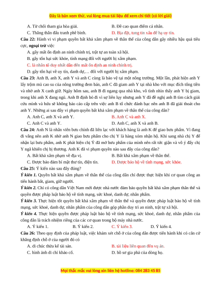 Câu 18: Hành vi vi phạm quyền và nghĩa vụ công dân về bảo vệ Tổ quốc gây nên nhiều hậu quả tiêu