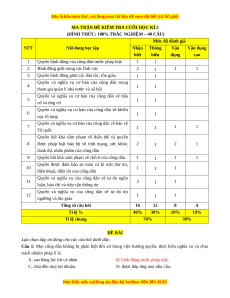 (HÌNH THỨC: 100% TRẮC NGHIỆM – 40 CÂU) Mức độ đánh giá STT Nội dung học tập Nhận Thông Vận Vận dụng biết hiểu dụng cao 1