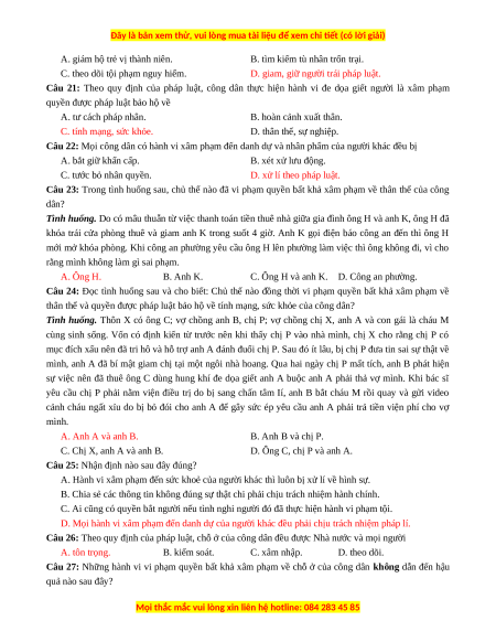 Câu 18: Nội dung nào sau đây không phản ánh đúng hậu quả của những hành vi vi phạm quyền và