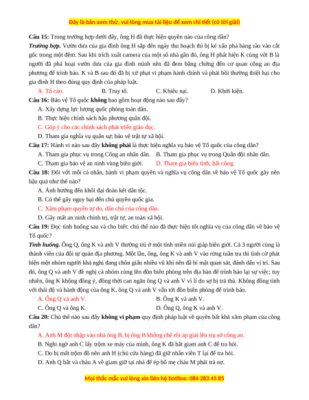 Câu 19: Đọc tình huống sau và cho biết: chủ thể nào đã thực hiện tốt nghĩa vụ của công dân về bảo vệ Tổ quốc?