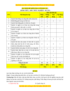 (HÌNH THỨC: 100% TRẮC NGHIỆM – 40 CÂU) Mức độ đánh giá STT Nội dung học tập Nhận Thông Vận Vận dụng biết hiểu dụng cao 1