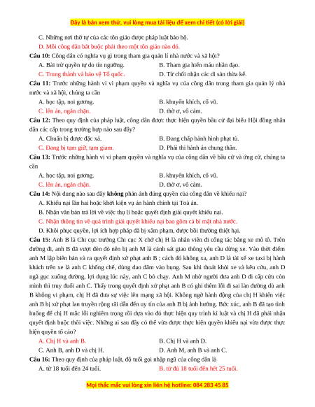 Câu 14: Nội dung nào sau đây không phản ánh đúng quyền của công dân về khiếu nại?