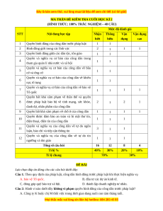 (HÌNH THỨC: 100% TRẮC NGHIỆM – 40 CÂU) Mức độ đánh giá STT Nội dung học tập Nhận Thông Vận Vận dụng biết hiểu dụng cao 1