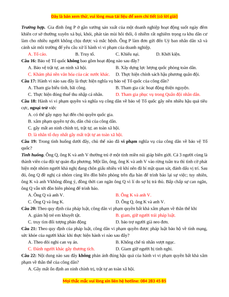 Câu 18: Hành vi vi phạm quyền và nghĩa vụ công dân về bảo vệ Tổ quốc gây nên nhiều hậu quả tiêu