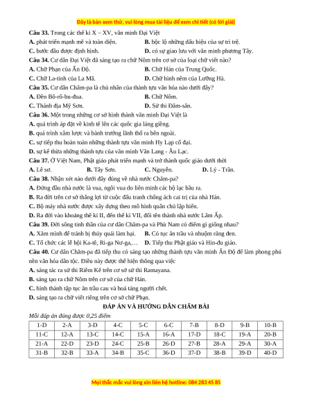 Câu 33. Trong các thế kỉ X – XV, văn minh Đại Việt