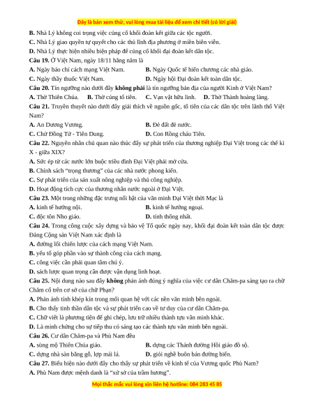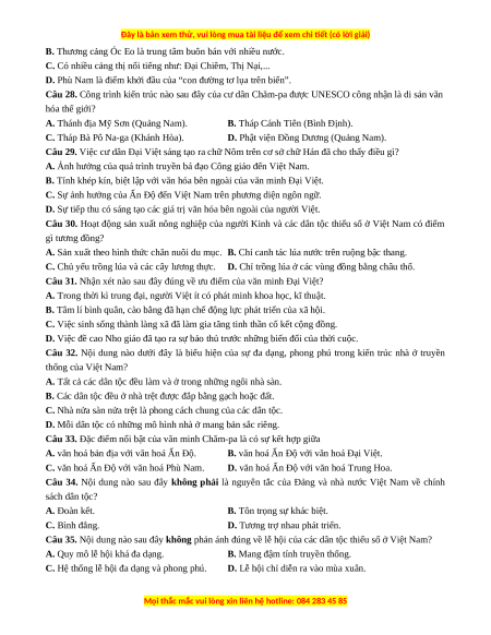 Câu 20. Tín ngưỡng nào dưới đây không phải là tín ngưỡng bản địa của người Kinh ở Việt Nam? A. Thờ Thiên Chúa.