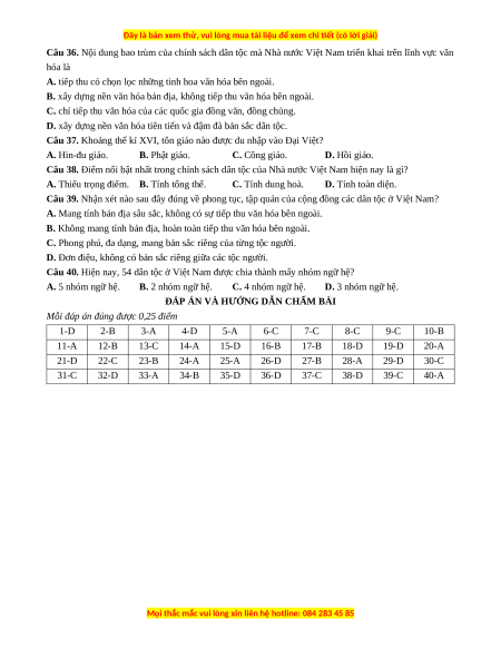 Câu 36. Nội dung bao trùm của chính sách dân tộc mà Nhà nước Việt Nam triển khai trên lĩnh vực văn