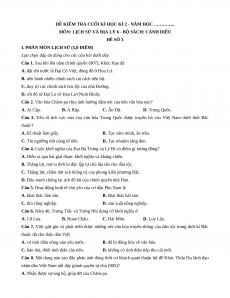 MÔN: LỊCH SỬ VÀ ĐỊA LÝ 6 - BỘ SÁCH: CÁNH DIỀU ĐỀ SỐ 3