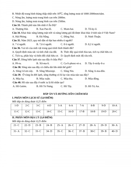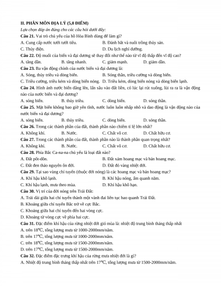 II. PHÂN MÔN ĐỊA LÝ (5,0 ĐIỂM)