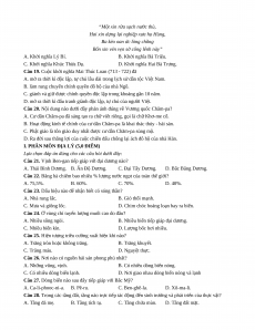 Câu 8. Năm 931, Dương Đình Nghệ dấy binh khởi nghĩa ở A. làng Ràng (Thanh Hóa). B. núi Nưa (Thanh Hóa). C. Hát Môn (Hà Nội). D. Đường Lâm (Hà Nội).