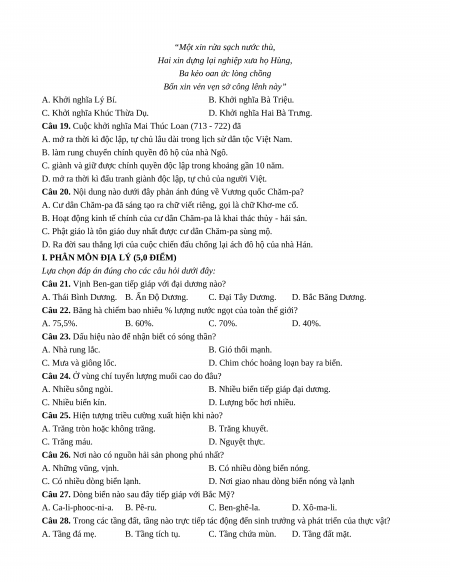 I. PHÂN MÔN ĐỊA LÝ (5,0 ĐIỂM)