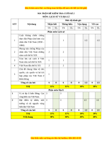 MÔN: LỊCH SỬ VÀ ĐỊA LÍ Mức độ đánh giá STT Nội dung Nhận biết Thông hiểu Vận dụng VD cao TN TL TN TL TN TL TN TL Phân môn Lịch sử Cuộc kháng chiến chống