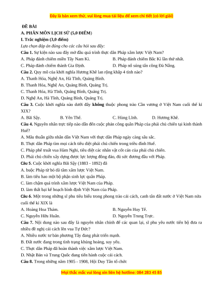 A. PHÂN MÔN LỊCH SỬ (5,0 ĐIỂM)