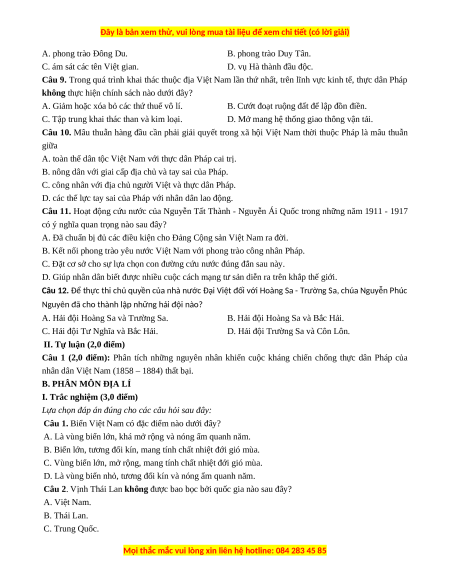 nhân dân Việt Nam (1858 – 1884) thất bại. B. PHÂN MÔN ĐỊA LÍ