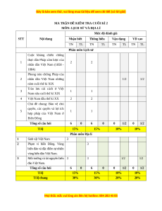 MÔN: LỊCH SỬ VÀ ĐỊA LÍ Mức độ đánh giá STT Nội dung Nhận biết Thông hiểu Vận dụng VD cao TN TL TN TL TN TL TN TL Phân môn Lịch sử Cuộc kháng chiến chống