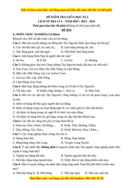 Câu 2. Anh hùng Đinh Núp là người dân tộc nào? A. Ba Na. B. Ê Đê. C. Cơ Ho. D. Mnông.