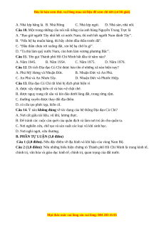 Câu 11. Tên gọi Thành phố Hồ Chí Minh bắt đầu từ năm nào? A. Năm 1945. B. Năm 1954. C. Năm 1975. D. Năm 1976.