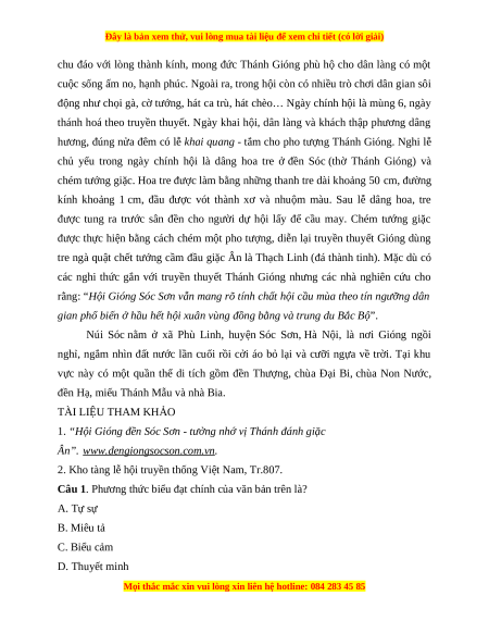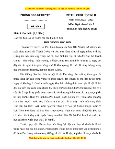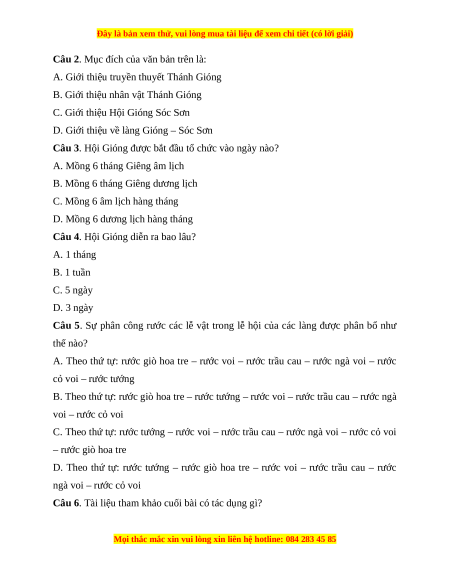 Đọc văn bản sau và trả lời các câu hỏi bên dưới: HỘI GIÓNG SÓC SƠN