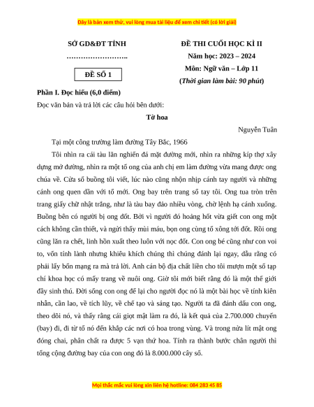 Môn: Ngữ văn – Lớp 11 ĐỀ SỐ 1