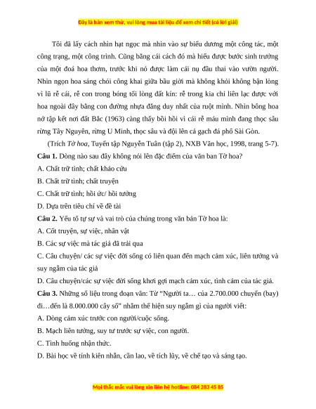Câu 1. Dòng nào sau đây không nói lên đặc điểm của văn ban Tờ hoa?