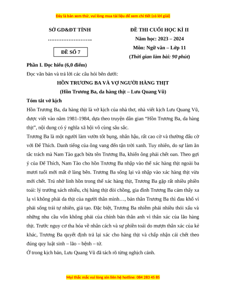 Môn: Ngữ văn – Lớp 11 ĐỀ SỐ 7