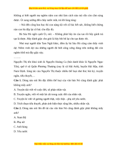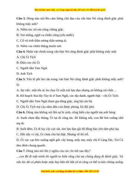Câu 2. Dòng nào nói lên đề tài của văn bản Nó cũng đánh giặc phải không mấy anh? A. Nam Bộ B. Phụ nữ C. Anh hùng D. Yêu nước