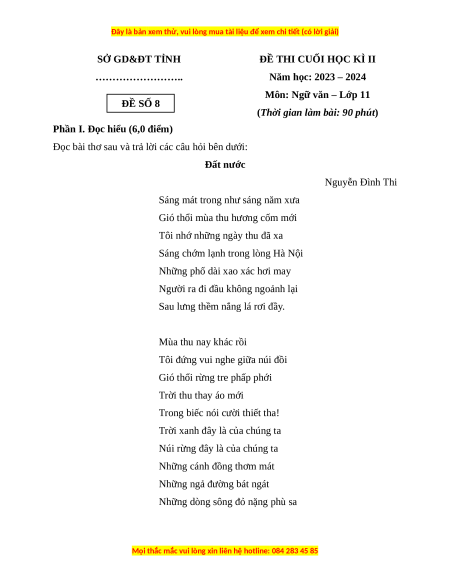 Môn: Ngữ văn – Lớp 11 ĐỀ SỐ 8
