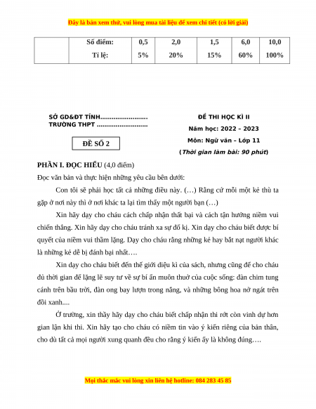 Đề thi cuối kì 2 Ngữ văn 11 (Đề 2)