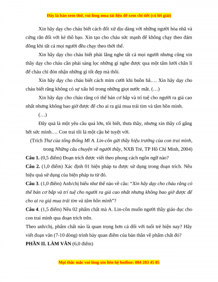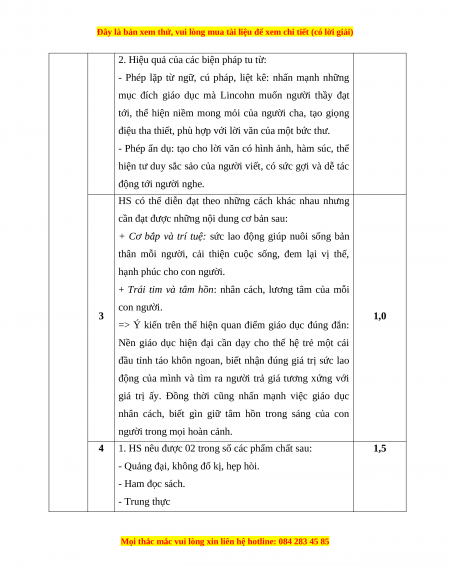 Câu 4. (1,5 điểm) Nêu 02 phẩm chất mà A. Lin-côn muốn người thầy giáo dục cho
