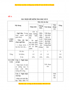 MA TRẬN ĐỀ KIỂM TRA HỌC KÌ II