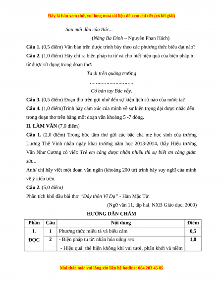 (Ngữ văn 11, tập hai, NXB Giáo dục, 2009) HƯỚNG DẪN CHẤM Phần Câu Nội dung Điểm I. 1