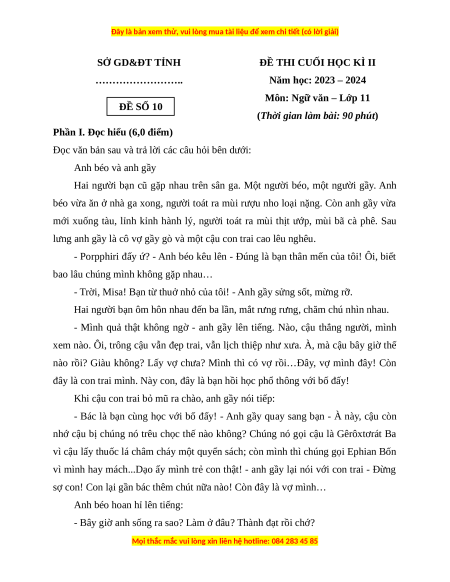 Môn: Ngữ văn – Lớp 11 ĐỀ SỐ 10