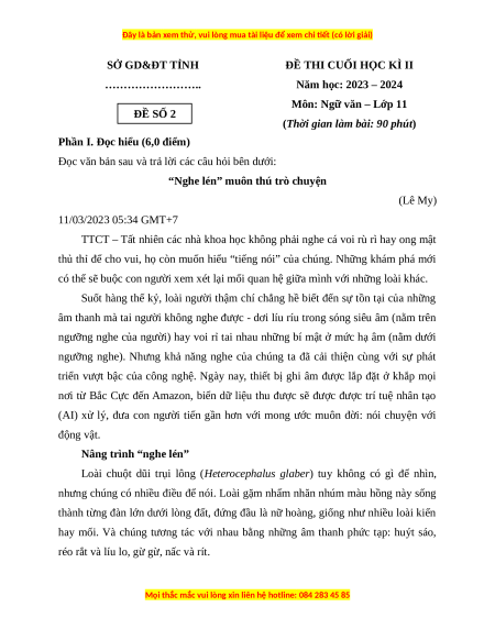 Đề thi cuối kì 2 Ngữ văn 11 Kết nối tri thức (Đề 2)
