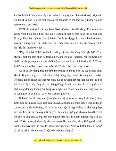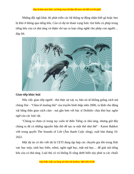 tiếng kêu của cá nhà táng và thậm chí tạo ra loại công nghệ cho phép con người… đáp lời. Giao tiếp khác loài