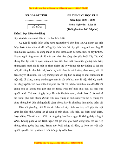 Môn: Ngữ văn – Lớp 11 ĐỀ SỐ 3