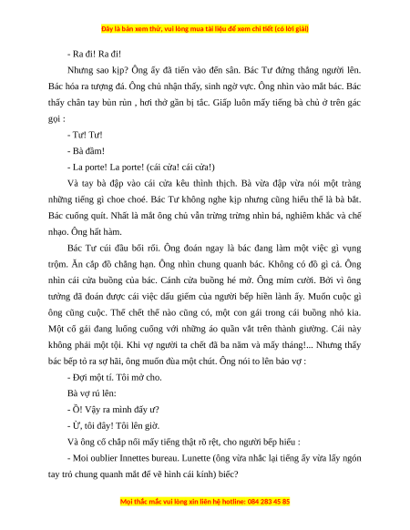 tưởng đã đoán được cái việc dấu giếm của người bếp hiền lành ấy. Muốn cuộc gì