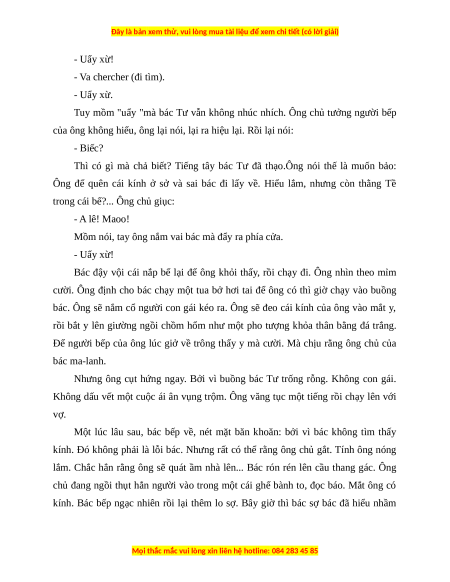 Và ông cố chắp nối mấy tiếng thật rõ rệt, cho người bếp hiểu :