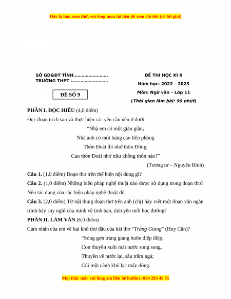 Đề thi cuối kì 2 Ngữ văn 11 năm (Đề 9)