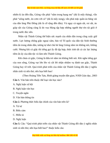 Câu 1. Văn bản trên thuộc thể loại văn học nào? A. Nghị luận xã hội B. Nghị luận văn học C. Truyện ngắn D. Văn bản thông tin