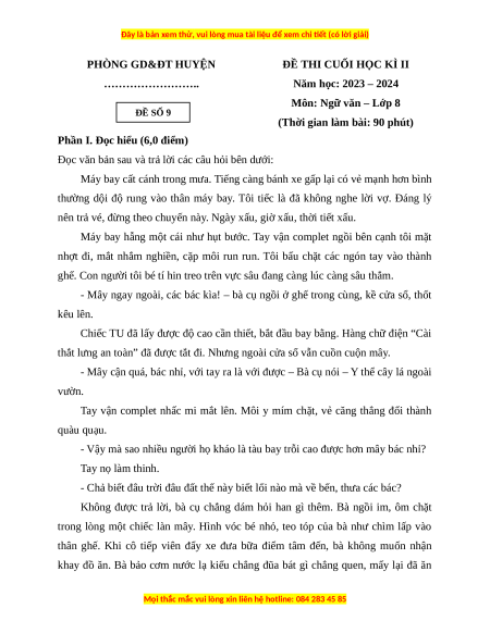 Môn: Ngữ văn – Lớp 8 ĐỀ SỐ 9