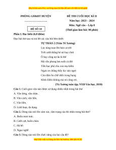 Câu 1. Cách gieo vần nào được sử dụng nhiều nhất trong bài thơ A. Vần lưng, vần chân. B. Vần cách, vần liền. C. Vần liền. D. Linh hoạt, đa dạng.
