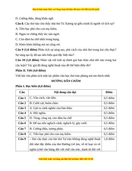 C. Tiền bạc phó cho con mụ kiếm. 0,5 điểm Câu 9